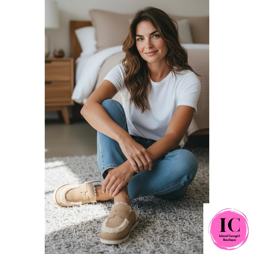 Experience unmatched comfort and timeless style with the Avalon Suede Shearling Loafer Mule. Crafted from soft suede and lined with plush shearling, these mules keep your feet warm while offering breathable coziness. The classic loafer design adds effortless sophistication, perfect for both casual and polished looks. Slip them on for all-day wear that combines luxury with ease. Elevate your footwear collection with a pair designed to deliver comfort and style in every step.
