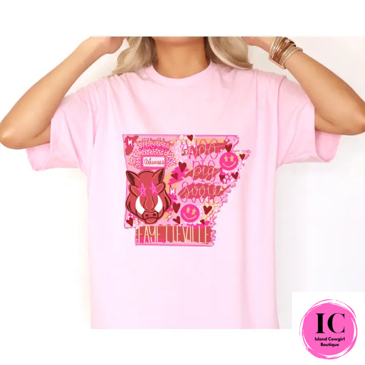 Show your Razorbacks pride in style with the Preppy Razorbacks Football Graphic Tee. Crafted for comfort and designed with a bold football graphic, this tee combines team spirit with a fresh, preppy look. Perfect for game days or casual wear, it keeps you cool while making a statement. Elevate your fan gear with a shirt that’s as dedicated as you are.