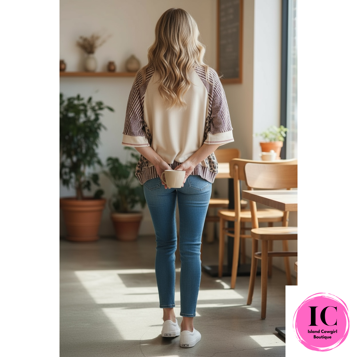 Make a statement in our Today's The Day Taupe Leopard Top. This eye-catching piece combines the timeless appeal of leopard print with a versatile taupe palette, perfect for elevating your everyday style. The flattering silhouette pairs effortlessly with jeans or skirts, making it your new go-to for both casual outings and dressed-up occasions. Don't wait—transform your wardrobe today.