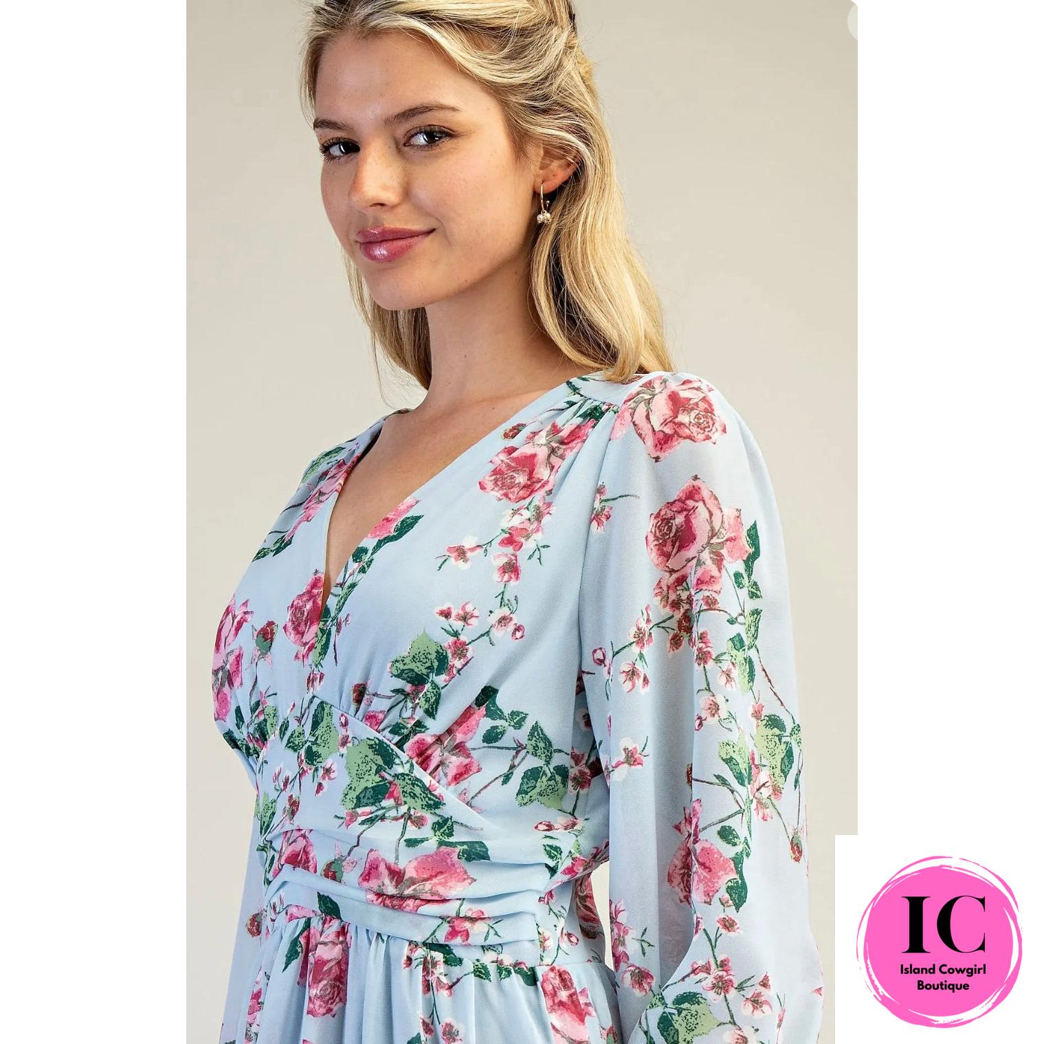 Until I Found You Blue Floral Dress