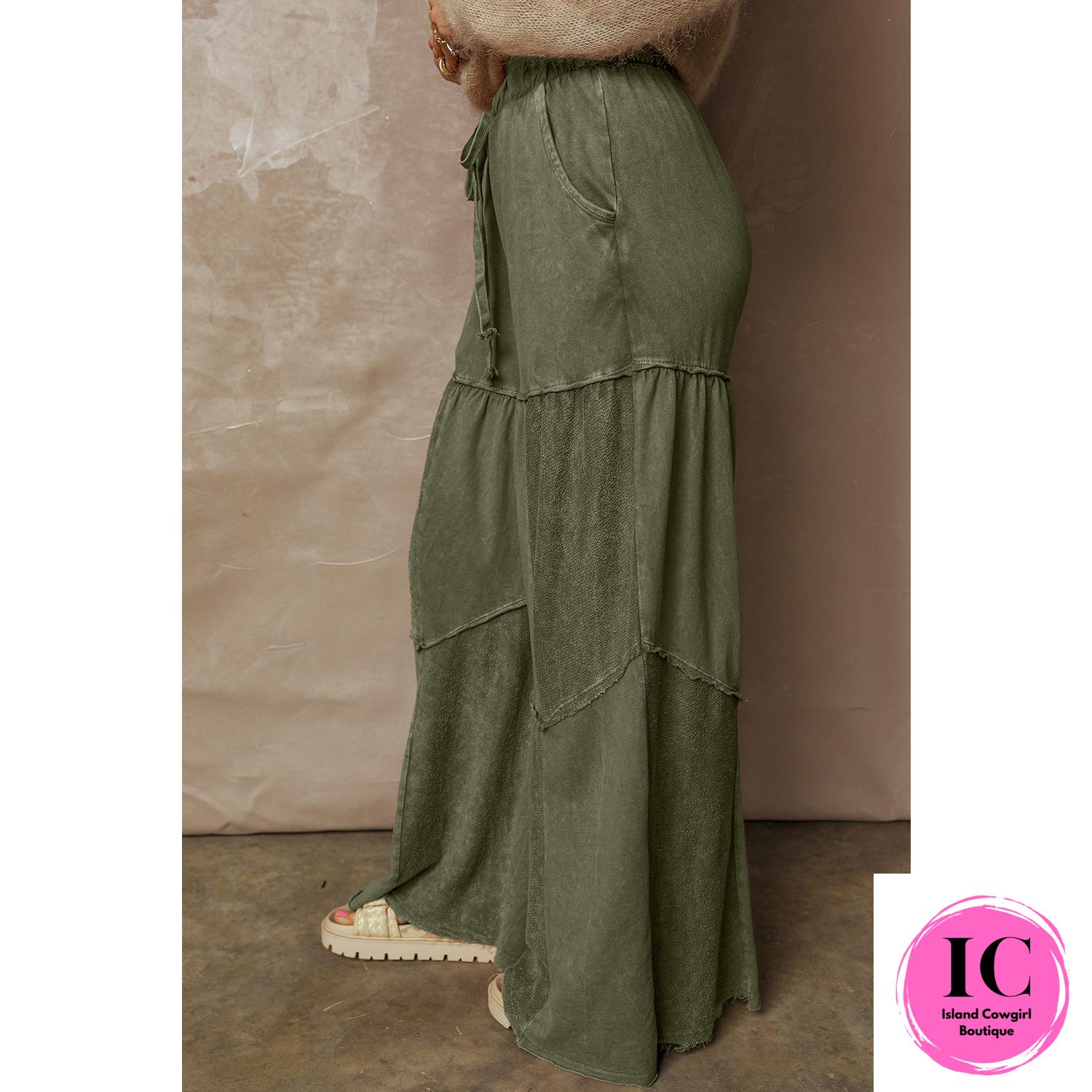 Wild Ginger Careys Mineral Wash Tiered Wide Leg Patchwork Drawstring Pants